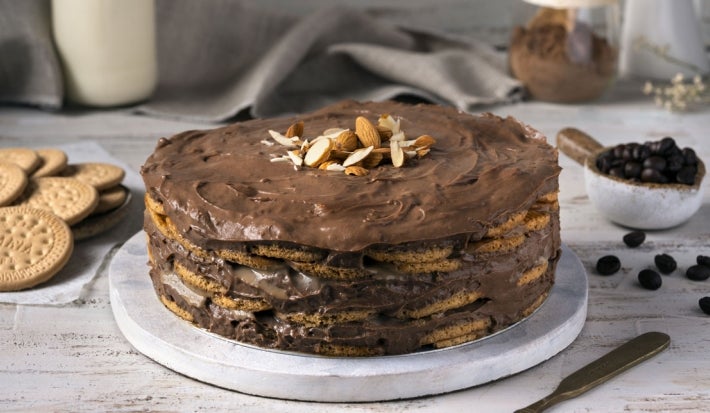 - 3.En un molde rectangular o redondo de vidrio apto para refrigeradora, coloca una capa de la mezcla de chocolate. Luego remoja las galletas MARÍA DE NESTLÉ® en la Leche Entera LA LECHERA®. Escurre el exceso y coloca sobre la capa inicial de chocolate. Continúa con otra capa de chocolate, y así hasta terminar la mezcla. Cubre con una tapa o papel plástico y lleva a refrigerar mínimo 2 horas. (130 minutos)