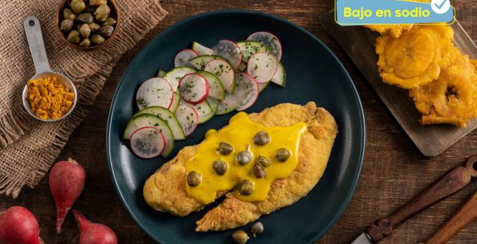Prepara este delicioso filete de tilapia con salsa de cúrcuma y alcaparras. Acompáñalo con una porción de arroz o patacones y una ensalada fresca.
